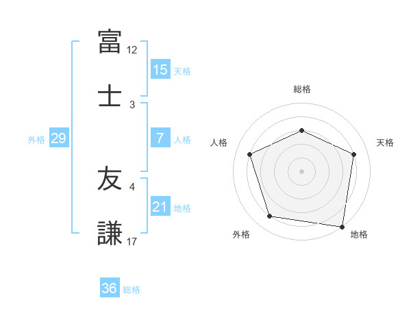 富士 友謙さんの天格は15画の4点!