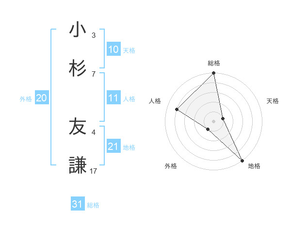 小杉 友謙さんの総格は31画の5点!