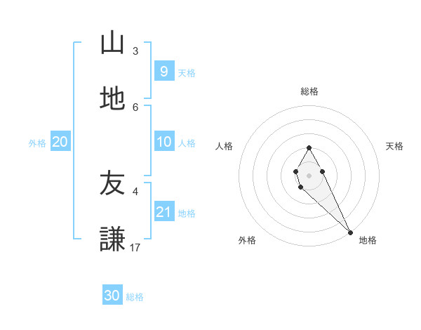山地 友謙さんの総格は30画の2点!