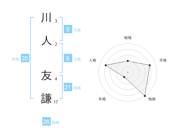 川人 友謙さんを姓名の画数から五運を鑑定
