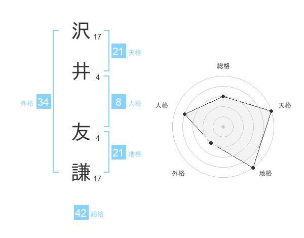 沢井 友謙さんの天格は21画の5点!