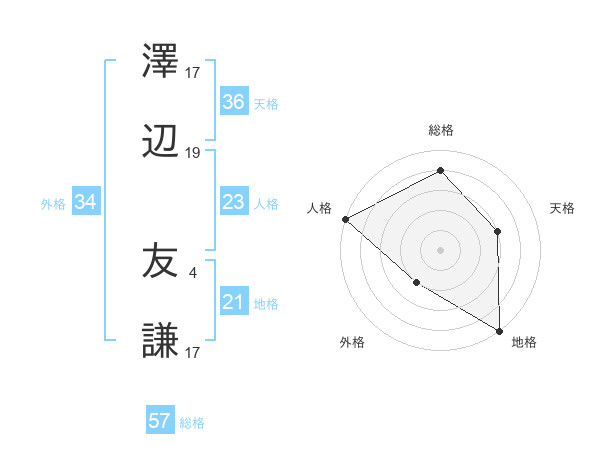 澤辺 友謙さんを姓名の画数から五運を鑑定