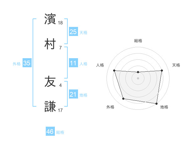 濱村 友謙さんの天格は25画の4点!