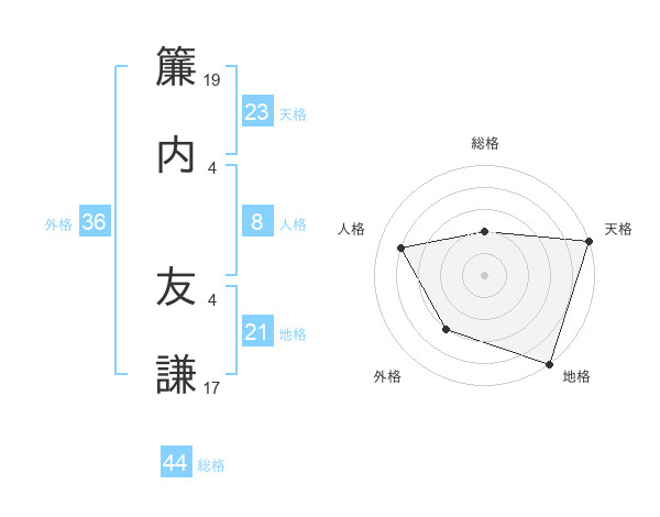 簾内 友謙さんの総格は44画の2点!