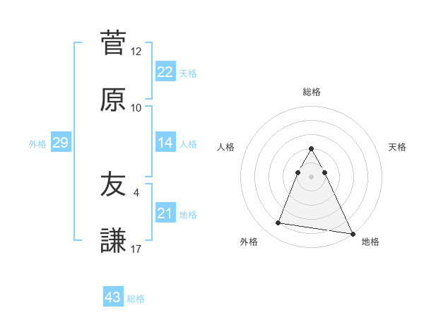 菅原 友謙さんを姓名の画数から五運を鑑定