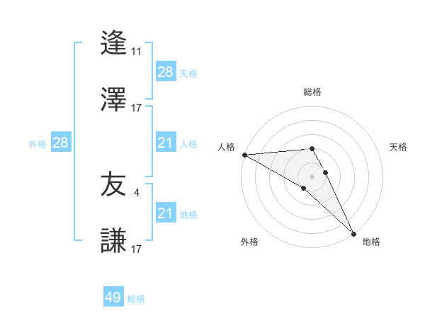 逢澤 友謙さんを姓名の画数から五運を鑑定