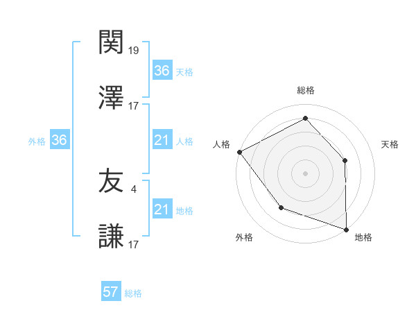 関澤 友謙さんの総格は57画の4点!