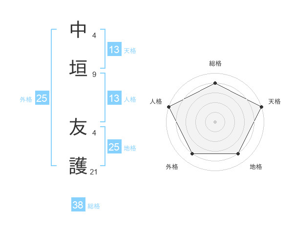 中垣 友護さんの天格は13画の5点!
