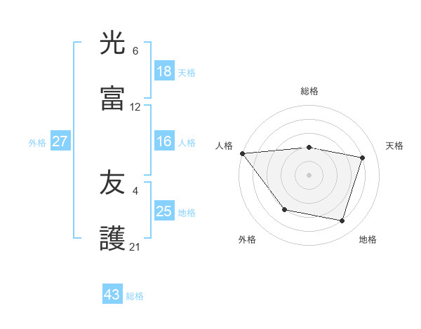 光富 友護さんの総格は43画の2点!