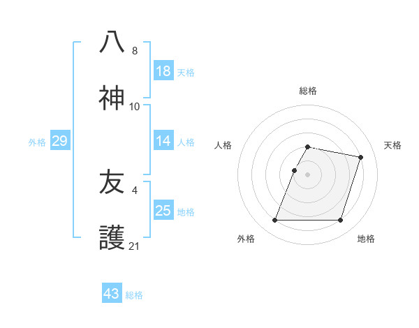 八神 友護さんの地格は25画の4点!