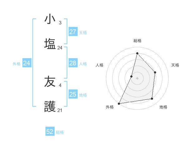 小塩 友護さんの外格は24画の5点!