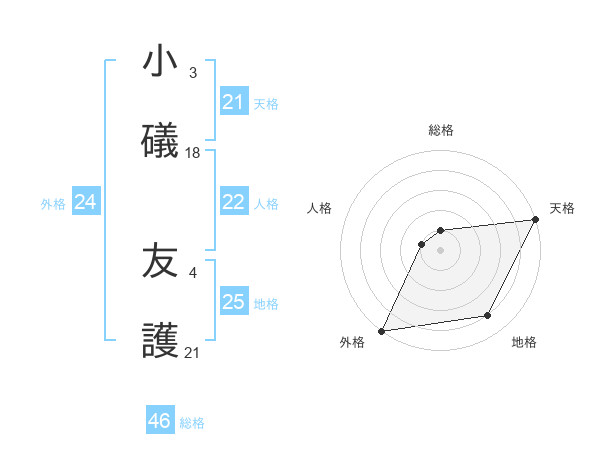小礒 友護さんの天格は21画の5点!