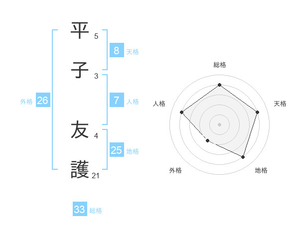 平子 友護さんの天格は8画の4点!