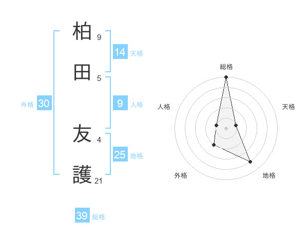 柏田 友護さんの総格は39画の5点!