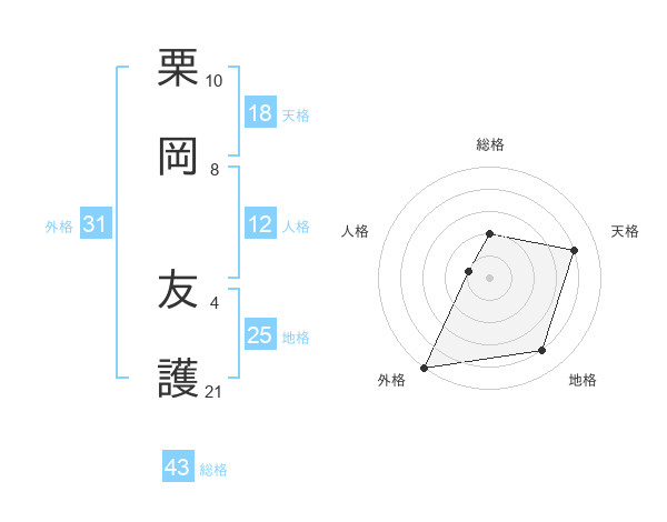 栗岡 友護さんの地格は25画の4点!