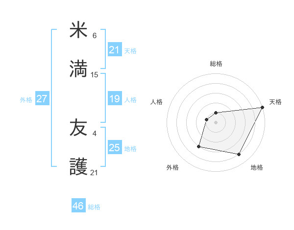 米満 友護さんの天格は21画の5点!