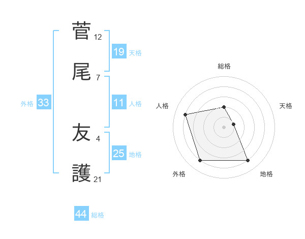 菅尾 友護さんを姓名の画数から五運を鑑定