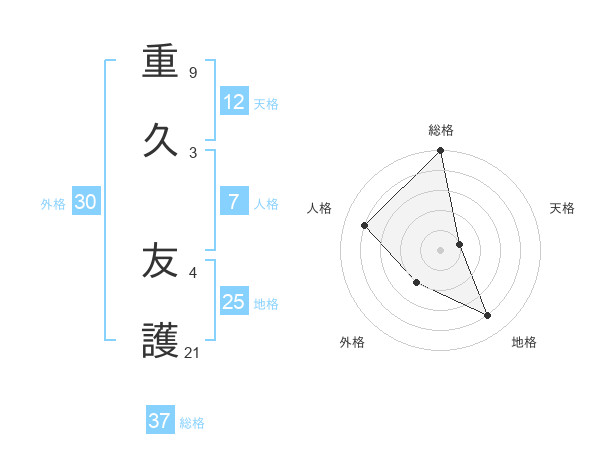 重久 友護さんの総格は37画の5点!