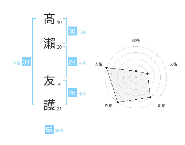 髙瀨 友護さんの外格は31画の5点!
