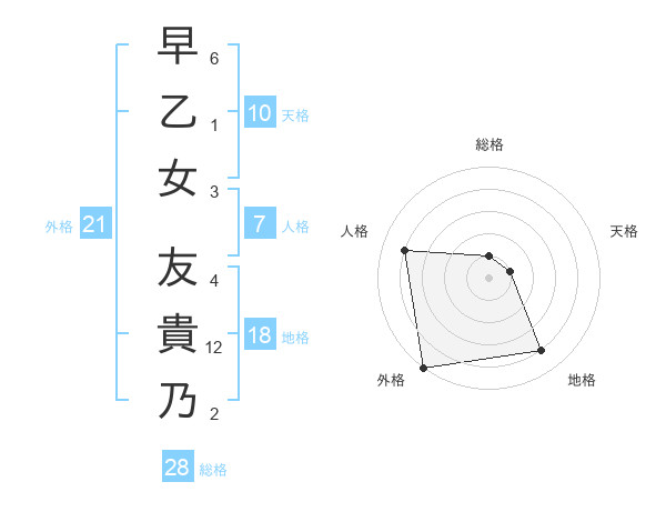 早乙女 友貴乃さんを姓名の画数から五運を鑑定