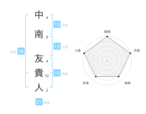 中南 友貴人さんの天格は13画の5点!