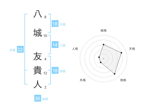 八城 友貴人さんの天格は18画の4点!