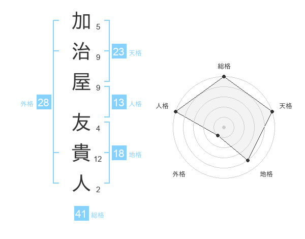加治屋 友貴人さんの総格は41画の5点