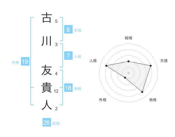 古川 友貴人さんを姓名の画数から五運を鑑定