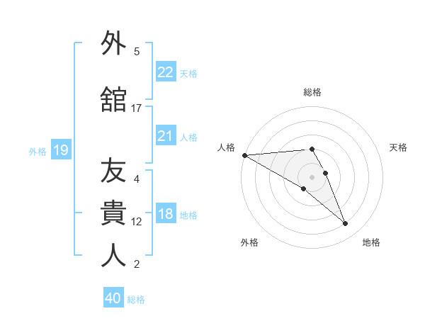 外舘 友貴人さんを姓名の画数から五運を鑑定
