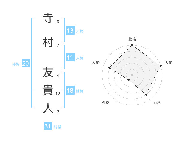 寺村 友貴人さんを姓名の画数から五運を鑑定