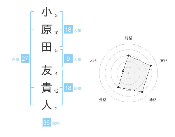 小原田 友貴人さんを姓名の画数から五運を鑑定