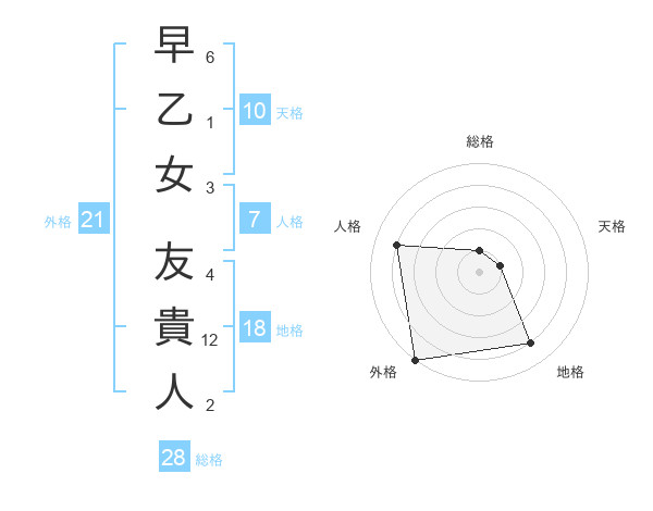 早乙女 友貴人さんを姓名の画数から五運を鑑定
