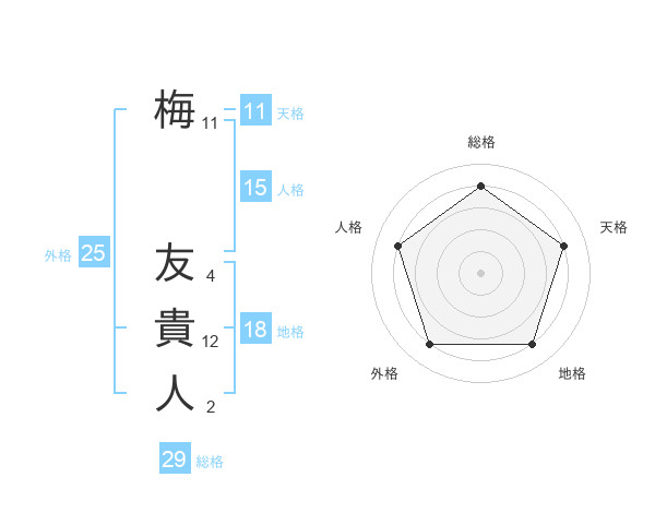 梅 友貴人さんの総格は29画の4点!