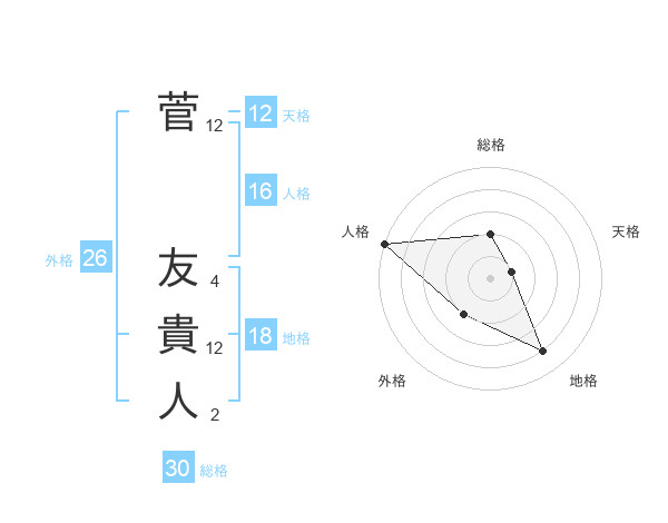 菅 友貴人さんの総格は30画の2点!