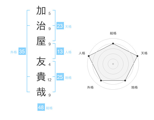 加治屋 友貴哉さんを姓名の画数から五運を鑑定