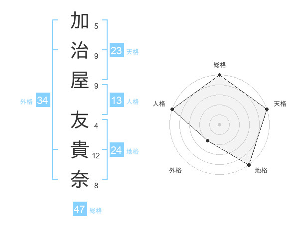 加治屋 友貴奈さんを姓名の画数から五運を鑑定