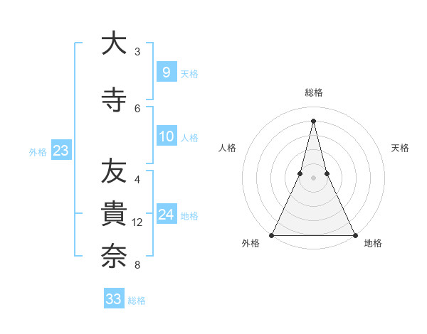 大寺 友貴奈さんを姓名の画数から五運を鑑定