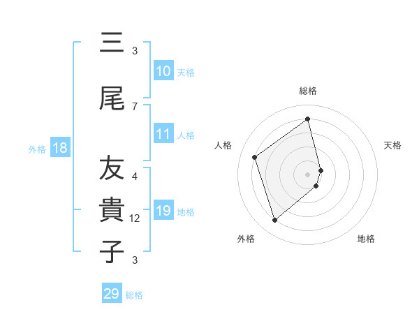 三尾 友貴子さんを姓名の画数から五運を鑑定