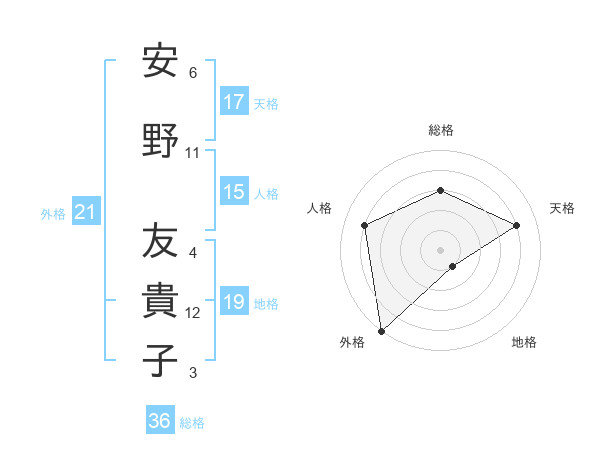 安野 友貴子さんを姓名の画数から五運を鑑定
