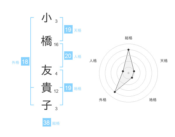 小橋 友貴子さんの総格は38画の4点!