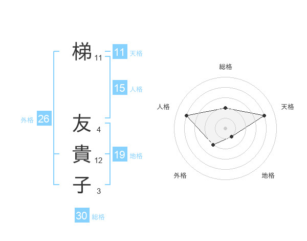 梯 友貴子さんの総格は30画の2点!