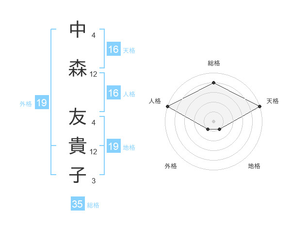 中森 友貴子さんを姓名の画数から五運を鑑定