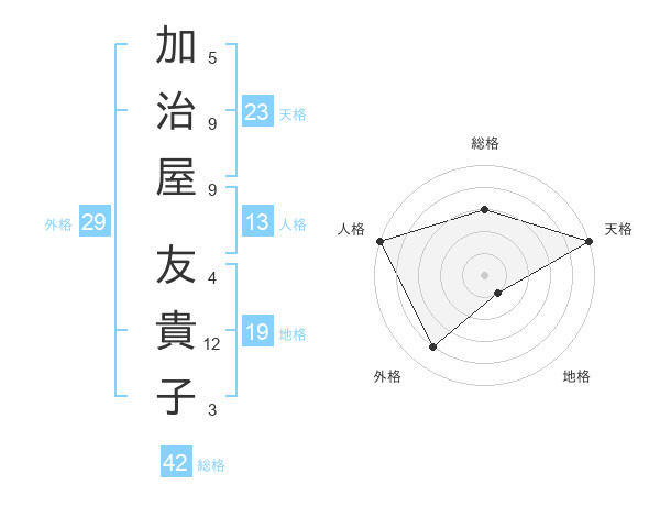 加治屋 友貴子さんを姓名の画数から五運を鑑定