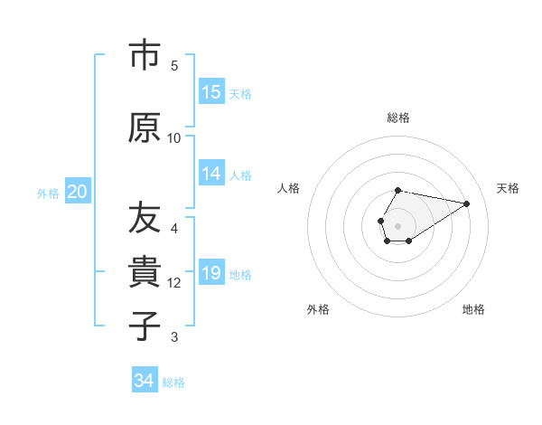 市原 友貴子さんを姓名の画数から五運を鑑定