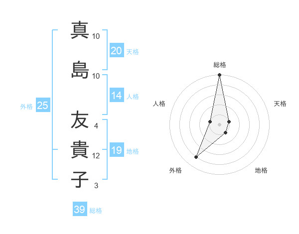 真島 友貴子さんを姓名の画数から五運を鑑定