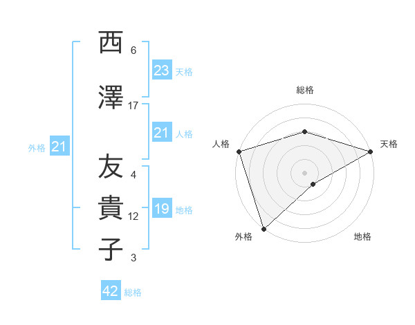 西澤 友貴子さんの総格は42画の3点