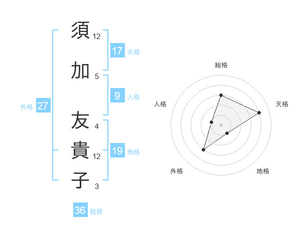 須加 友貴子さんを姓名の画数から五運を鑑定