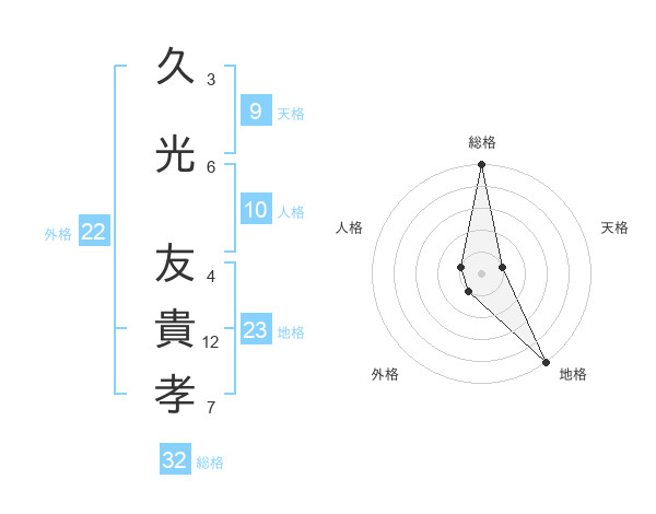 久光 友貴孝さんの総格は32画の5点!