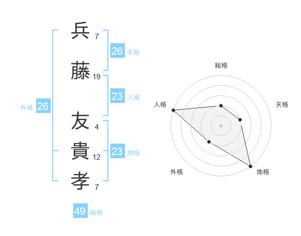 兵藤 友貴孝さんを姓名の画数から五運を鑑定