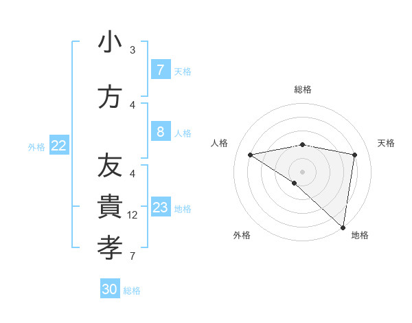 小方 友貴孝さんを姓名の画数から五運を鑑定
